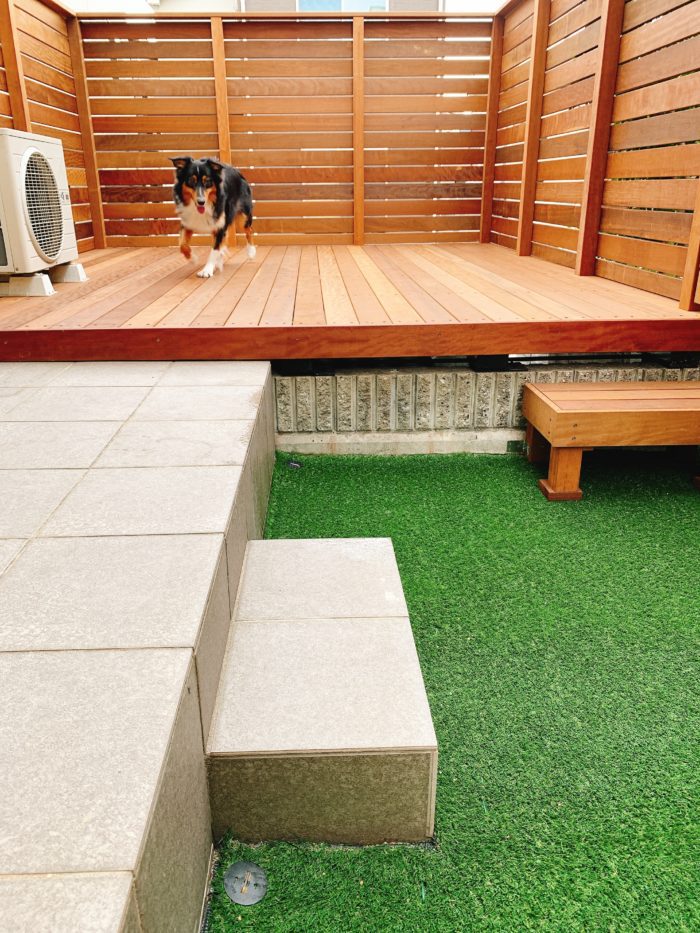 現在1歳になり、体重も20㎏を突破。この犬種の中では小柄な子なのですが、さすがに室内だけでは体力が有り余ってしまうので、急遽庭を増築することに。