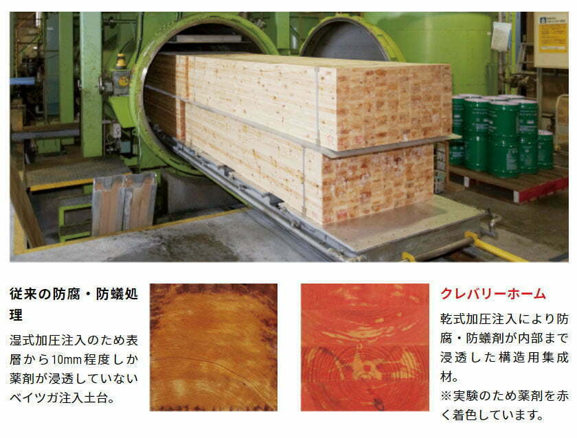 また、乾式加圧注入方式で防腐・防蟻性能を長期間維持します。