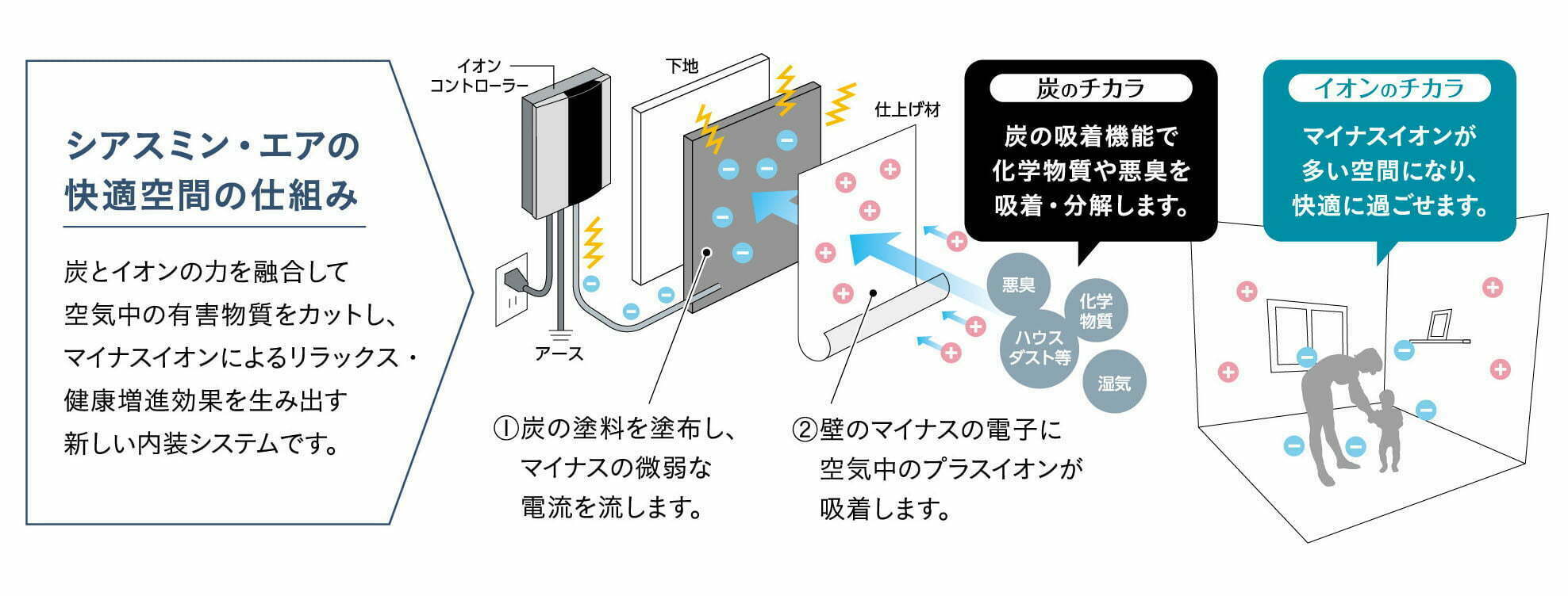 「炭」とマイナスオンの力でクリーンな空気環境をつくる内壁《シアスミン・エア》