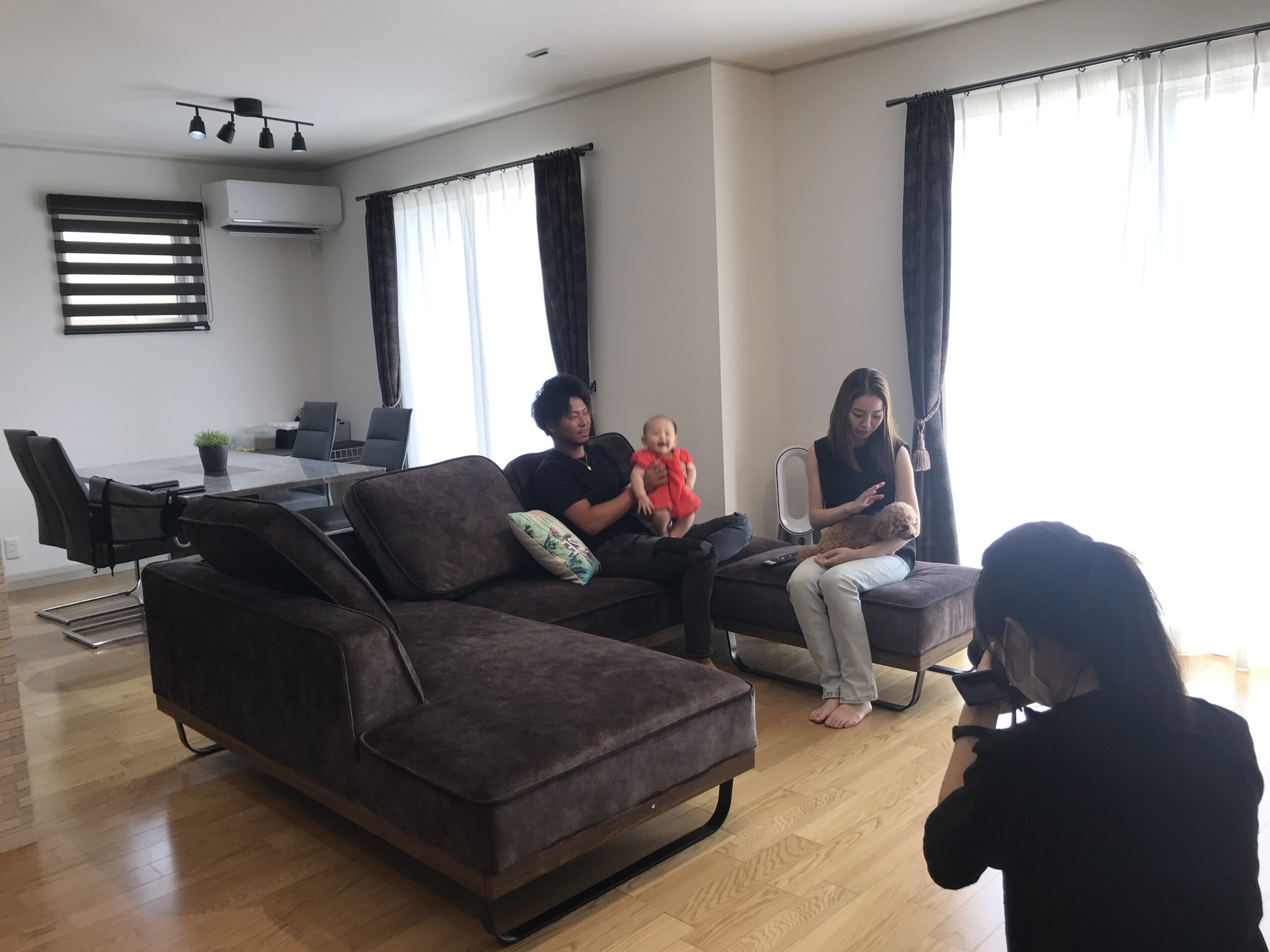 ご夫妻とお子さん、そしてワンちゃんも写真に入っていただき