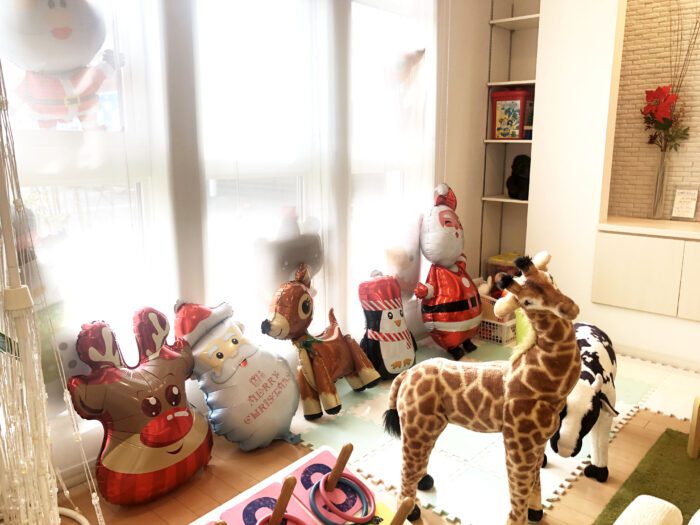 子供のプレイスペースにはサンタやトナカイなどのさまざまな風船を配置してあります!
