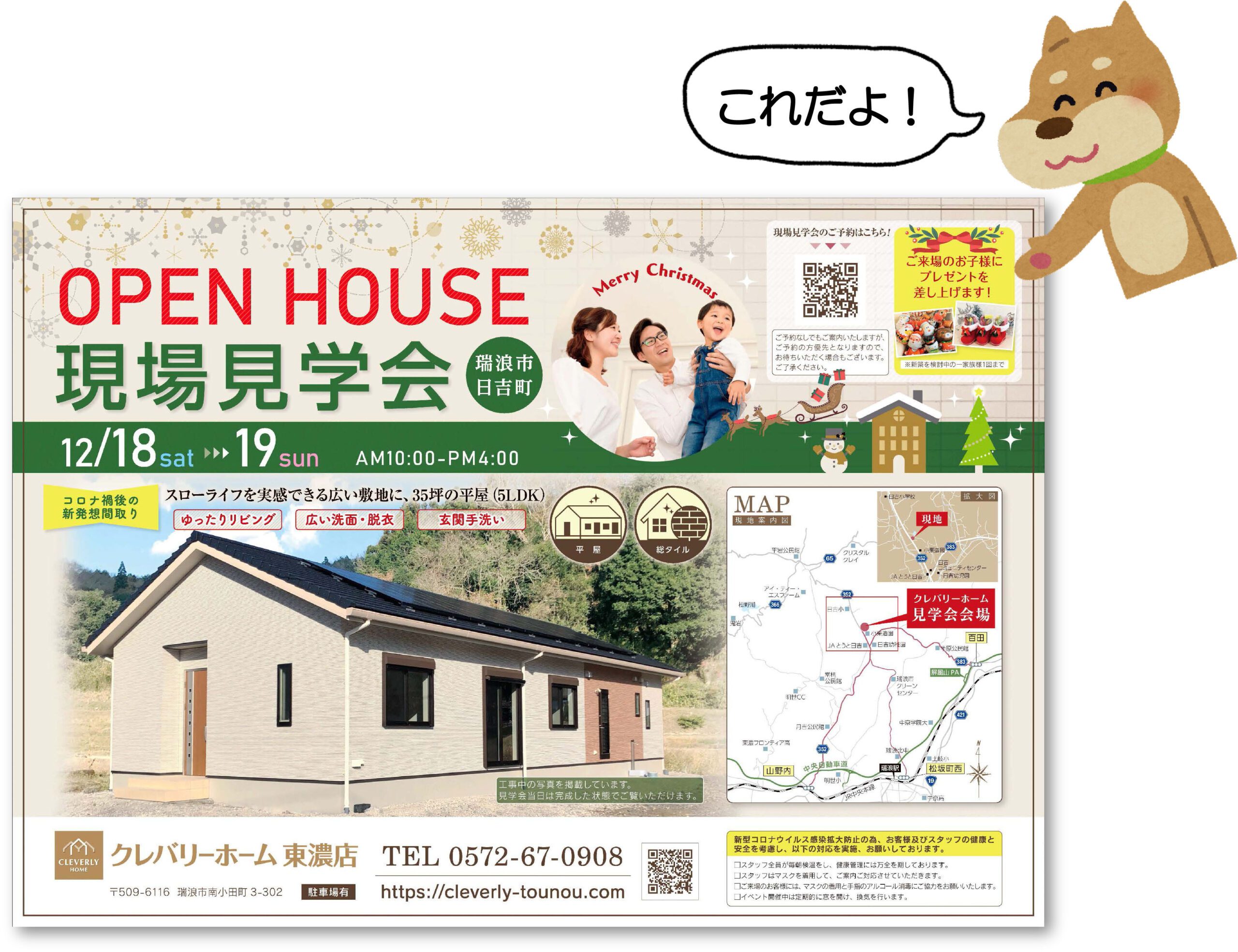 2021年12月18日(土)~19日(日)の2日間限定で、岐阜県瑞浪市日吉町にて木造平屋建ての現場見学会を開催いたします!