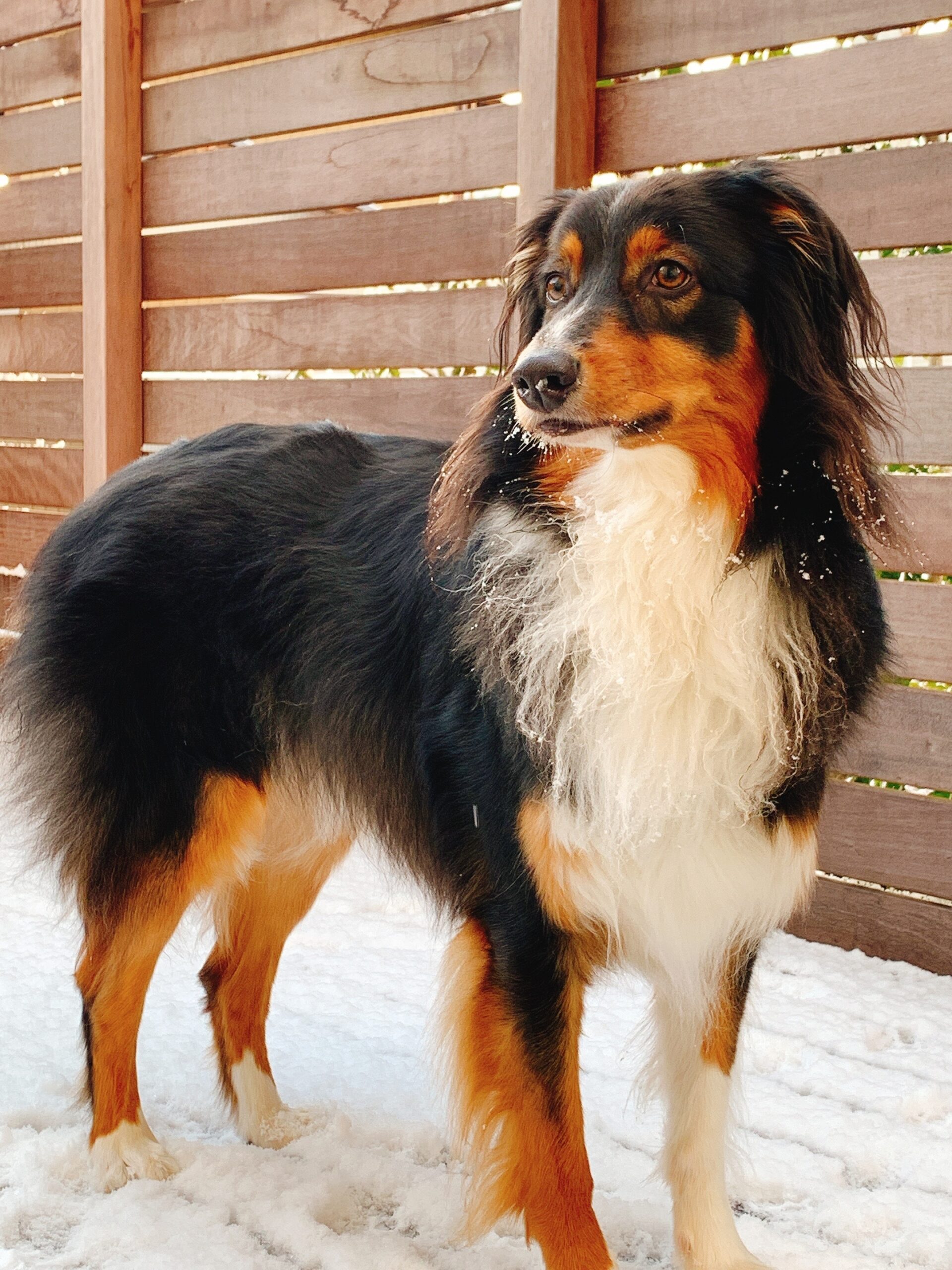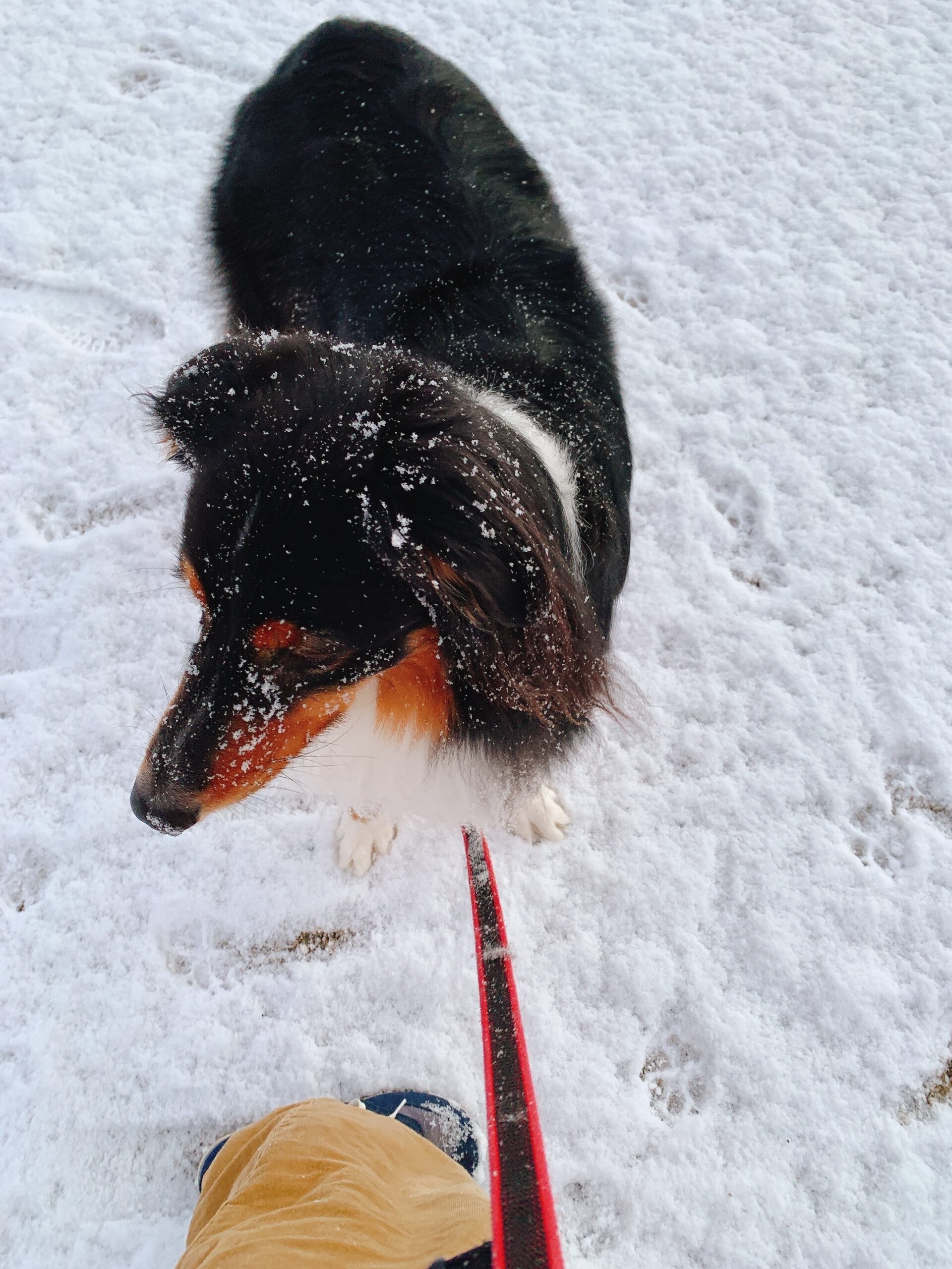 まったく寒さを感じさせず遊ぶ気満々。しかし、飼主は寒いので、暖かい室内で余暇を過ごしたい。