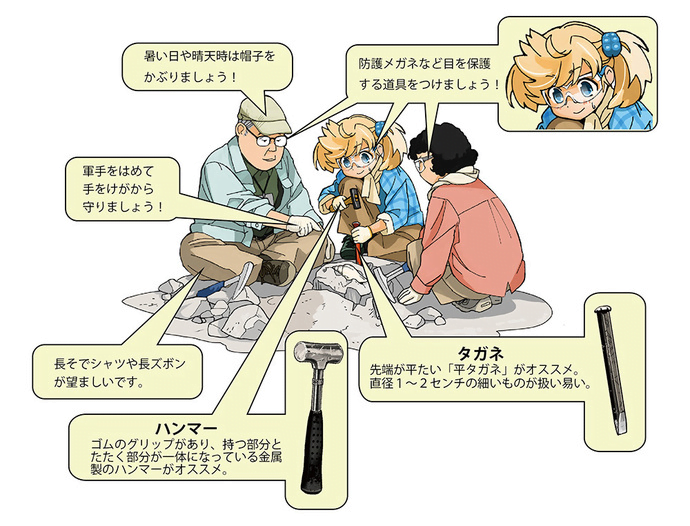 用意するものは、かなづちやハンマー・ゴーグル・たがね・新聞紙や袋もあるといいです。