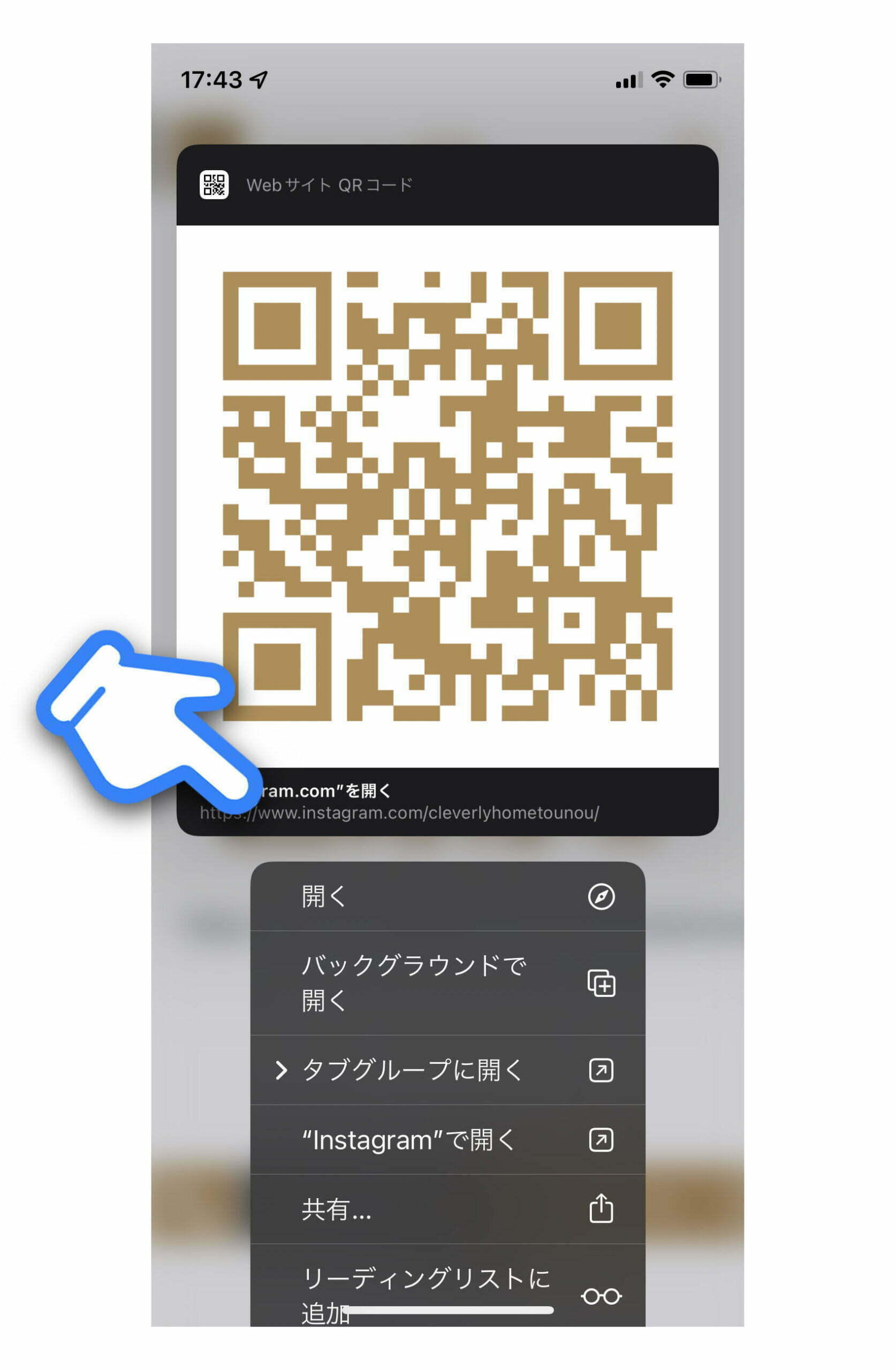 ①上記QRコードを3Dタッチ(画像を長押)