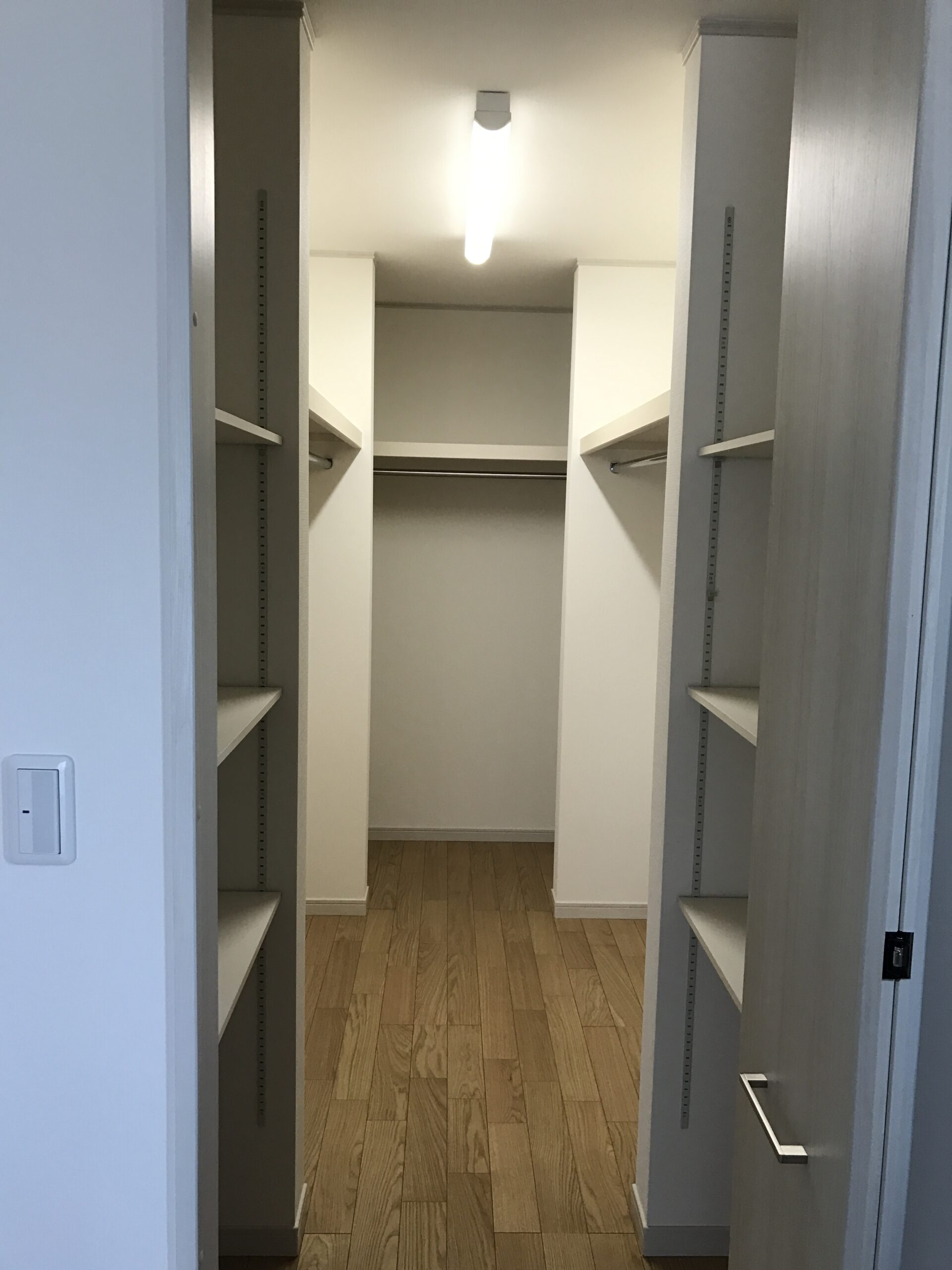 2畳程の1階ファミリークローゼットに、家族分の部屋着、仕事着、下着等の