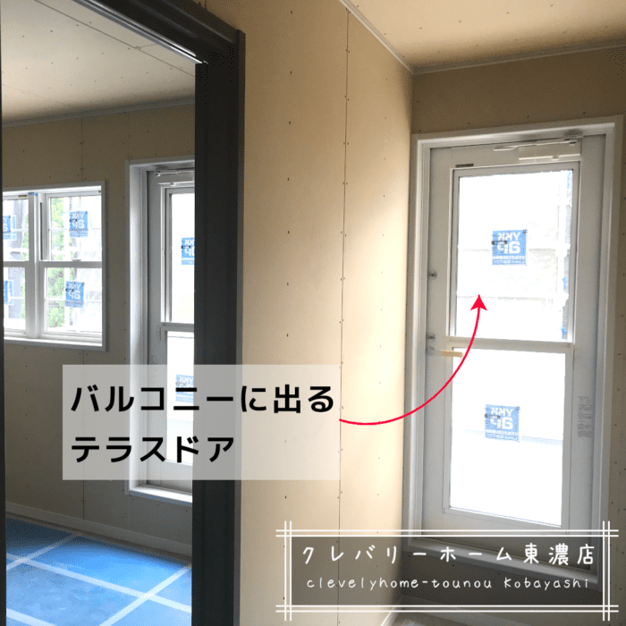 バルコニーへの出入りは、テラスドアを設置いたしました。
