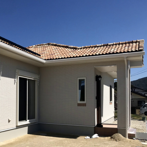 波型瓦の混ぜ色葺きにする事で南欧風の雰囲気になります。瓦の色はお客様もずいぶん悩まれていましたが、東濃店の今までの実例などを参考に色を決定されていました。