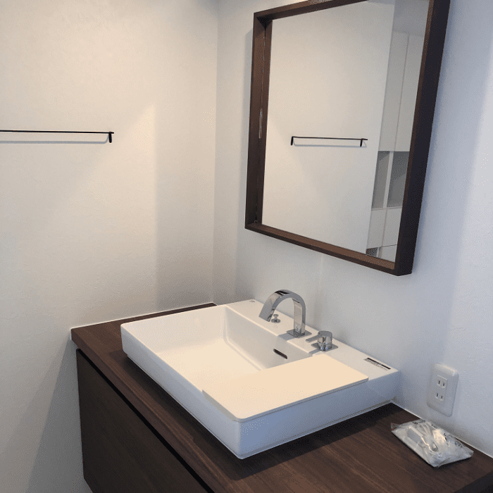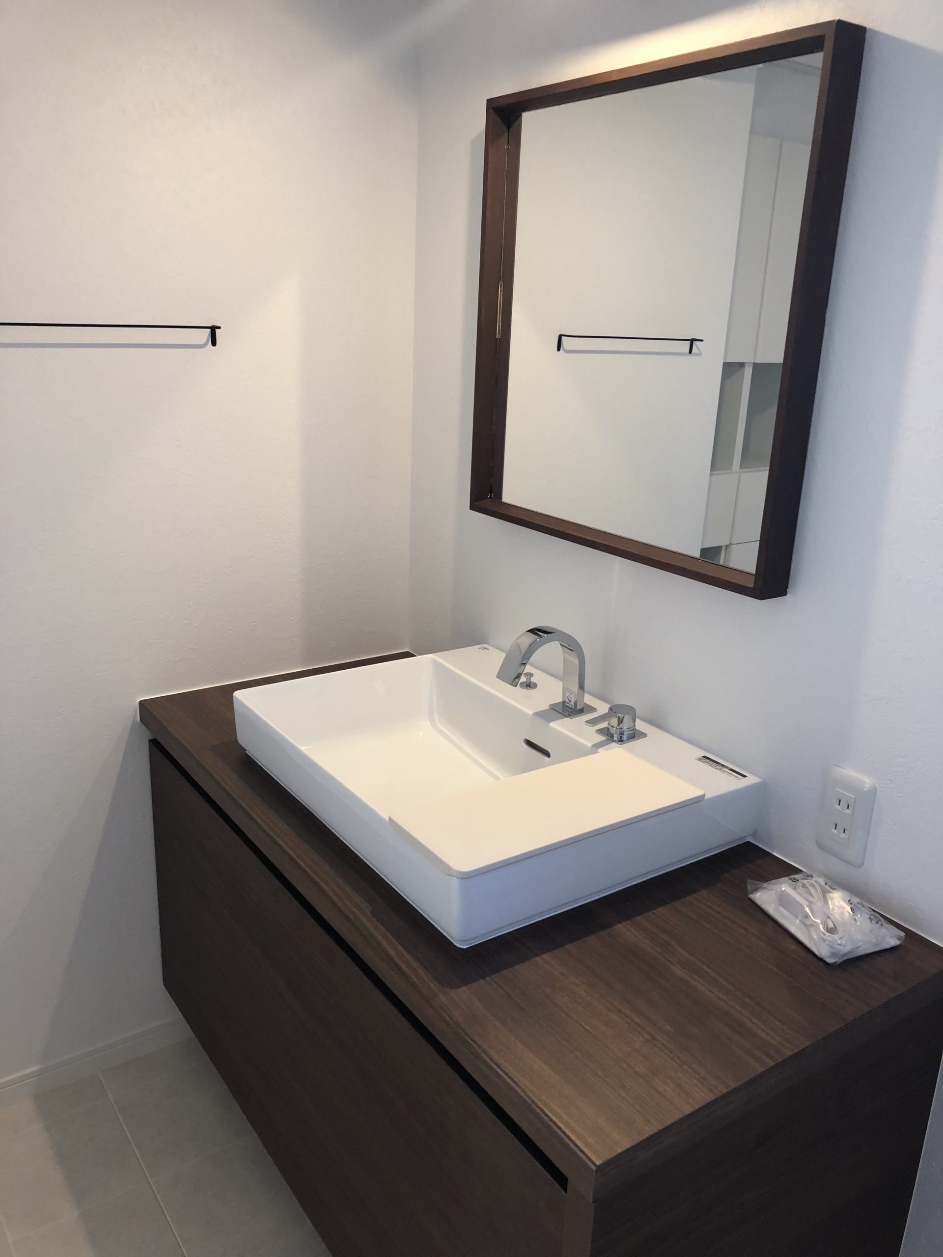 奥様が洗面台をこだわられる事は多いのですが、かっこいい洗面台を選ばれました。