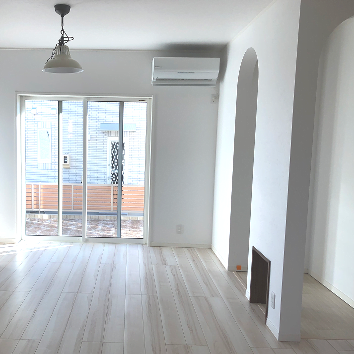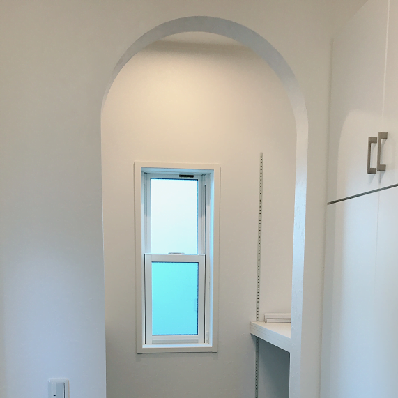 土間収納は扉を付けづにオープンにしてあります。開口部の上部はアーチ型にして南欧風のかわいい雰囲気が出ています。