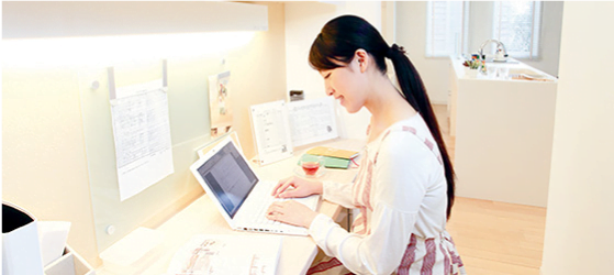 クレバリーホームでは、家事や子育てに対して多彩な視点を持つ女性ならではのアイデアを積極的に採り入れています。家族の距離感にまで配慮したプランニングで、忙しい奥さまの毎日をサポートします。