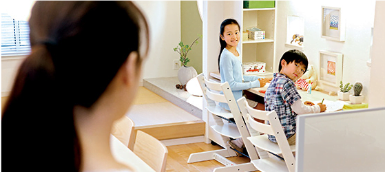近必ずリビングを通る2階への動線により、ごく自然にお子さまとのコミュニケーションがとりやすくなります。