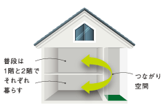 1階と2階で分ける場合と横並びに分ける場合がありますが、横並びの方がより生活空間を分けることが可能になります。