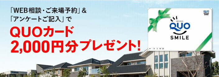 来場予約をされますとQUOカード2,000円分プレゼントです。