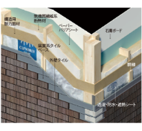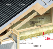 屋根、壁、天井に断熱性能の高い部材を充填。さらに壁内の室内側を気密シートで覆うことで気密性を高めています。